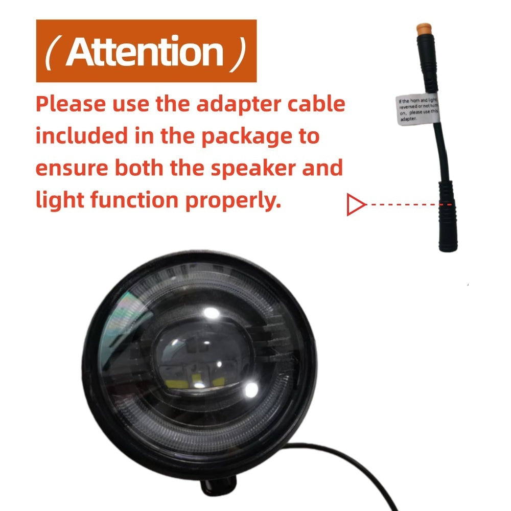 Nulkomma Ebike LED Light 36-60V Electric Bicycle Headlight with Horn